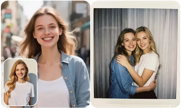 Simply upload two individual photos, and our free AI Polaroid duo selfie generator will merge them in seconds to create an ultra-realistic Polaroid style snapshot. With just a few clicks, you can achieve vintage charm, soft lighting effects, and naturally vibrant moments.Easy to use, completely free, and no watermarks.